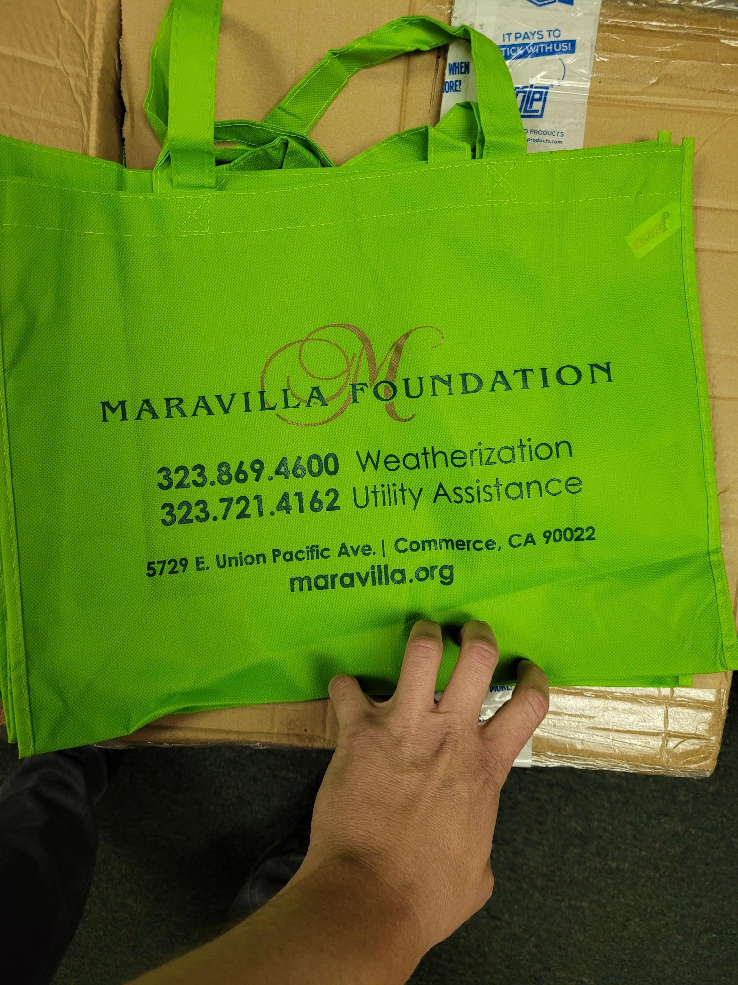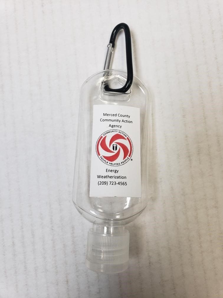 PG&E provide many items such as bags, compacts/mirrors, micor fiber cloths and a myriad of other items and educational material. It’s the main bulk of the items we give out at events. We also acquired a number of small containers that we fill with hand sanitizer and apply a small sticker we printed with the agency logo and telephone number.